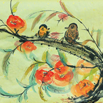 田秀珍国画柿子树《好事成双》热度 36566田秀珍国画柿子树《好事成双》