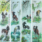田秀珍国画精品《骏马图四屏》热度 63731田秀珍国画精品《骏马图四屏》