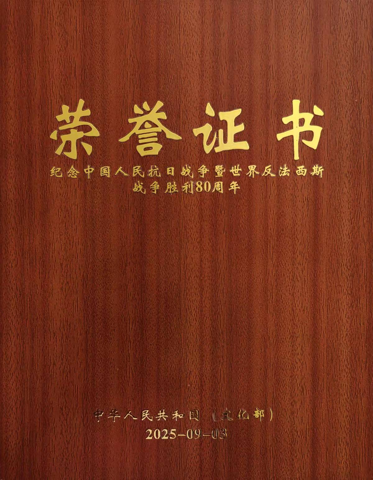 2019平型关大捷纪念馆田秀珍书画作品捐赠证书