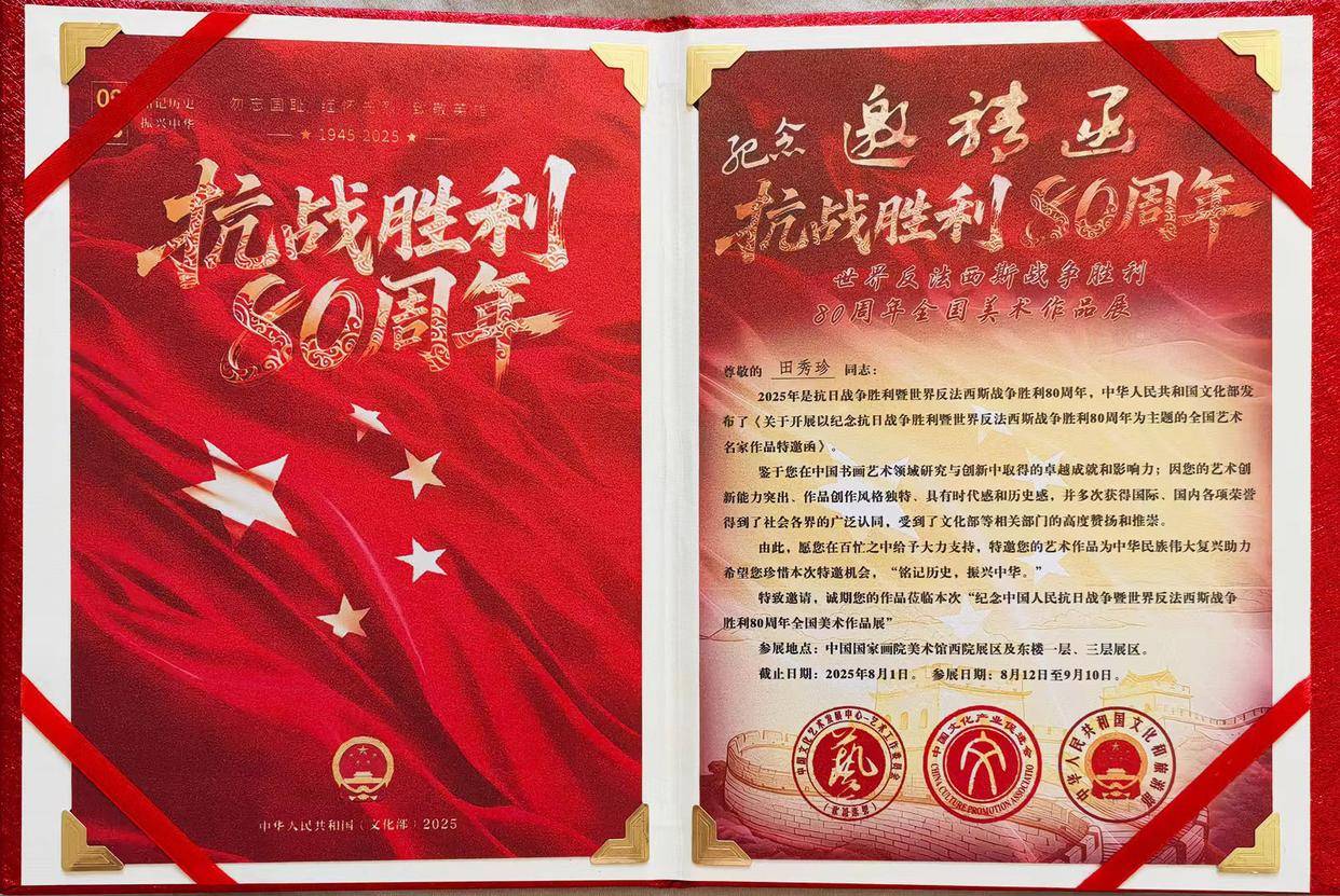 田秀珍书画作品受邀参加中国国家画院”纪念中国人民抗日战争暨世界反法西斯战争胜利80周年美术作品展“