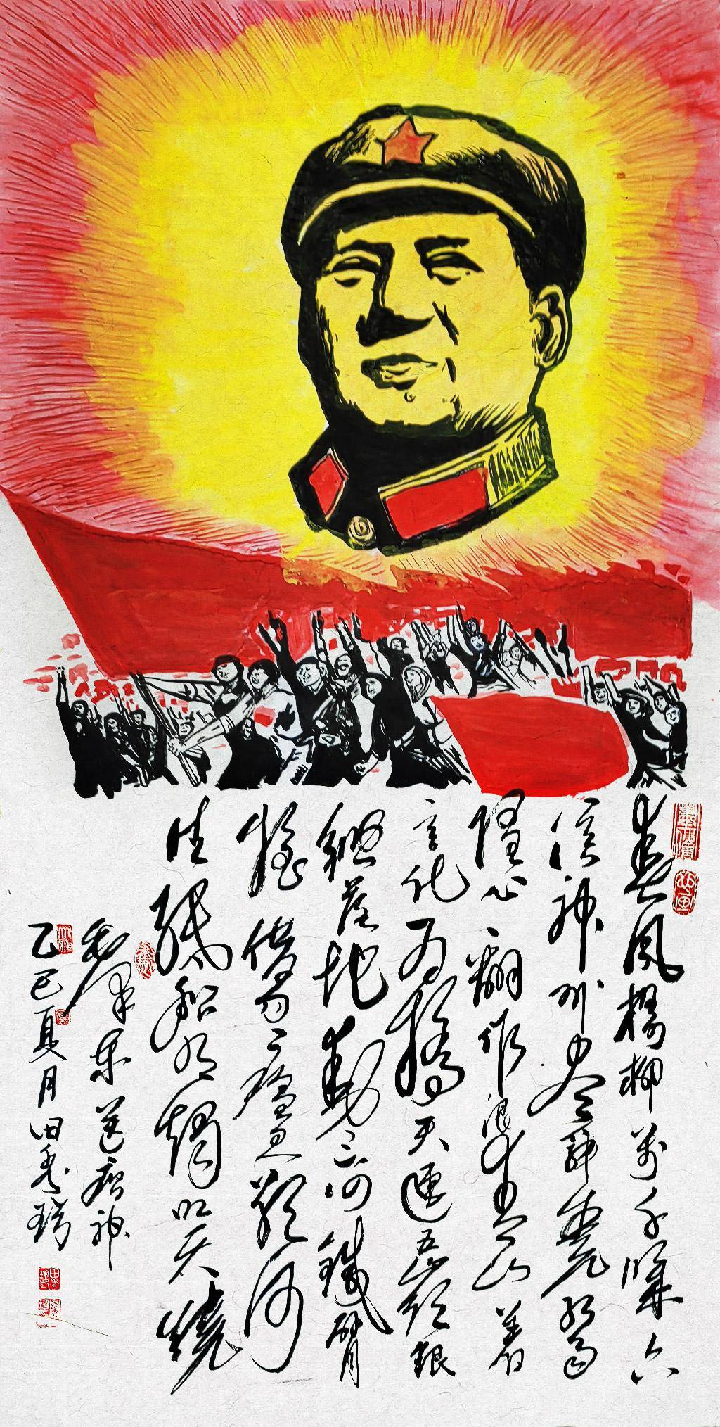 不忘初心——田秀珍书画作品展红色经典国画精品《大海航行靠舵手》展示