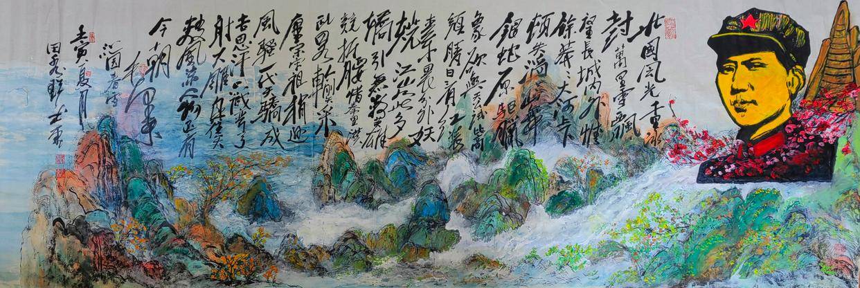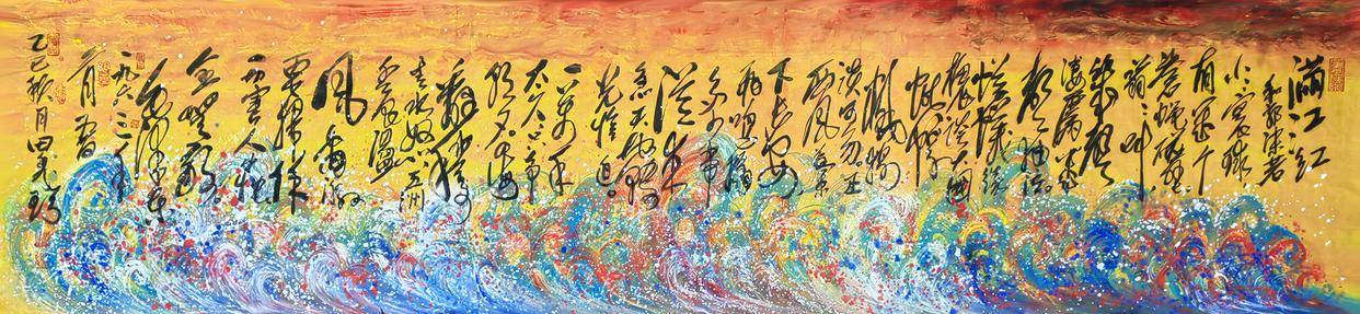 田秀珍以毛泽东诗词为意境创作的书画巨作《满江红》